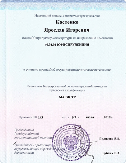 • магистр юриспруденции